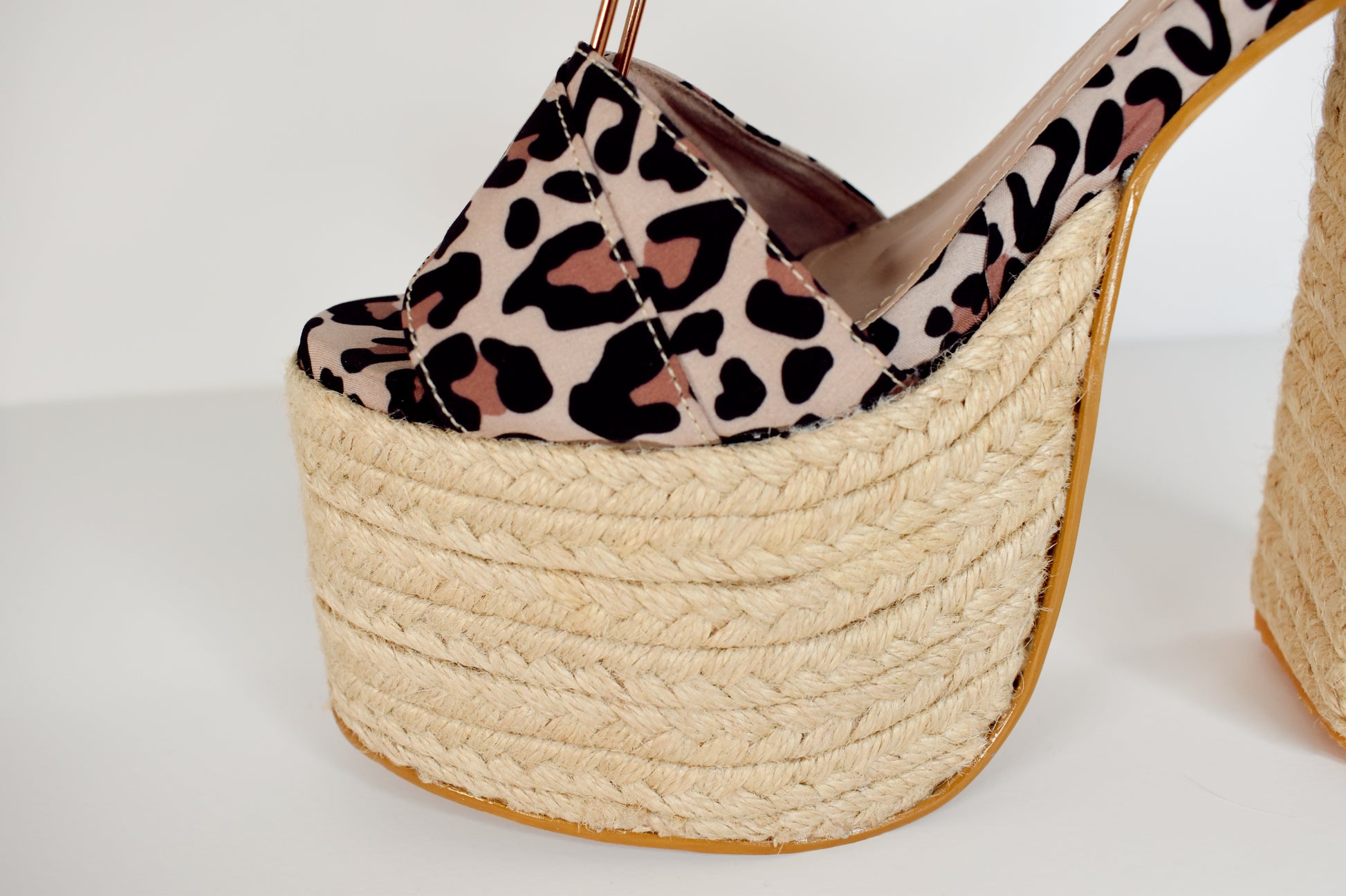 SANDALIA CON TACÓN ESTILO CUBANO FORRADO EN YUTE NATURAL DE 14 cms. DE ALTO