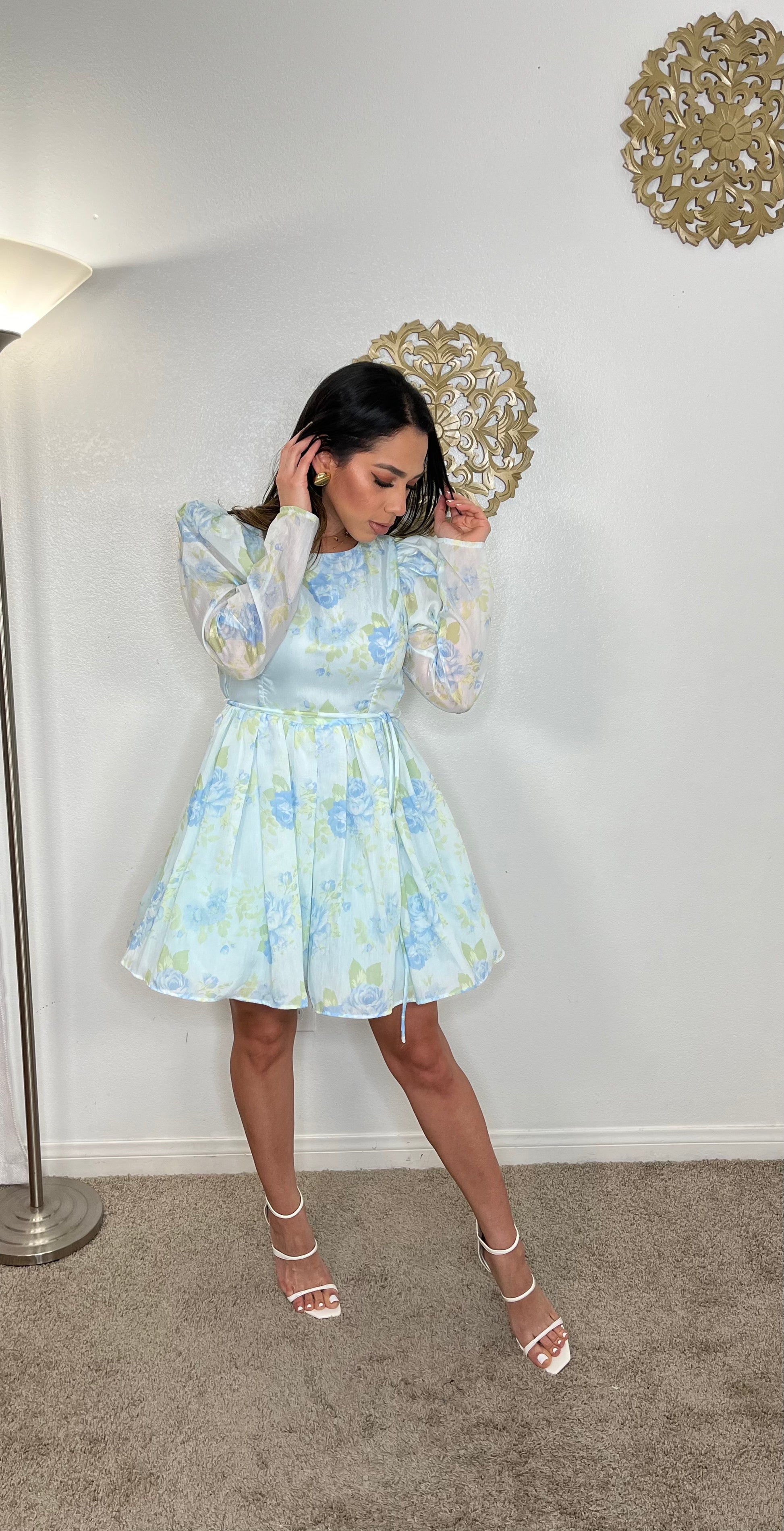 PUFF SLEEVE FLARE WAIST BOW MINI DRESS