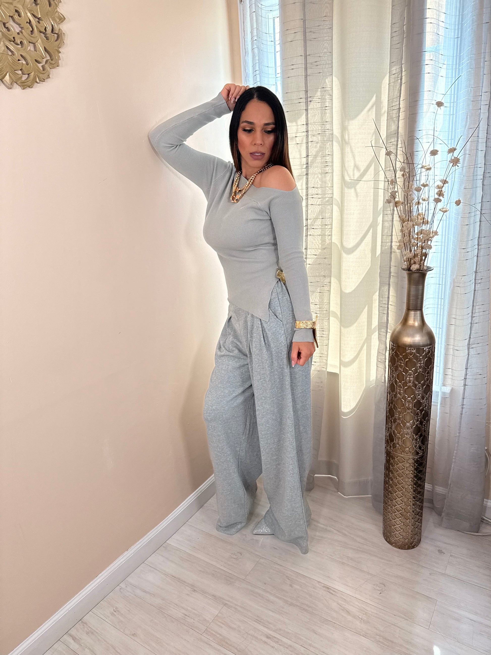 ASYMMETRICAL SWEATER WITH TRHIM