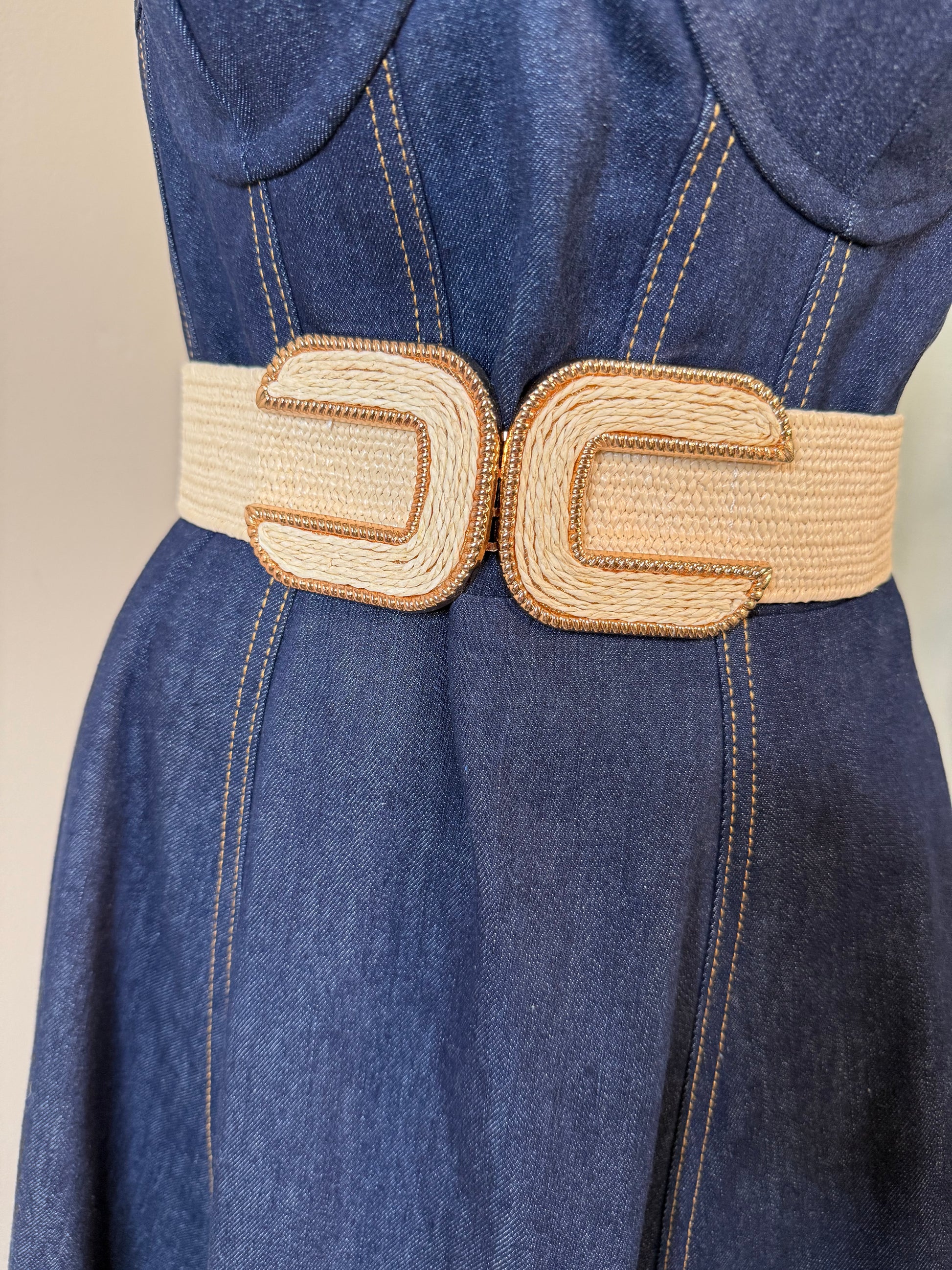 U SHAP BUCKLE ELASTIC STRAW BELT